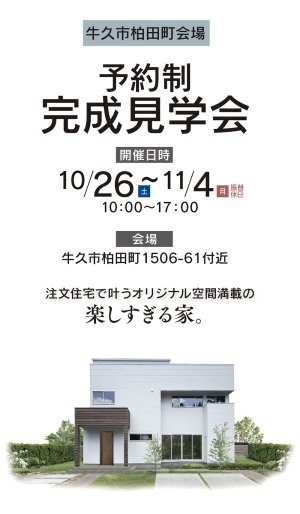 牛久市柏田町で《予約制》の完成見学会を開催致します。