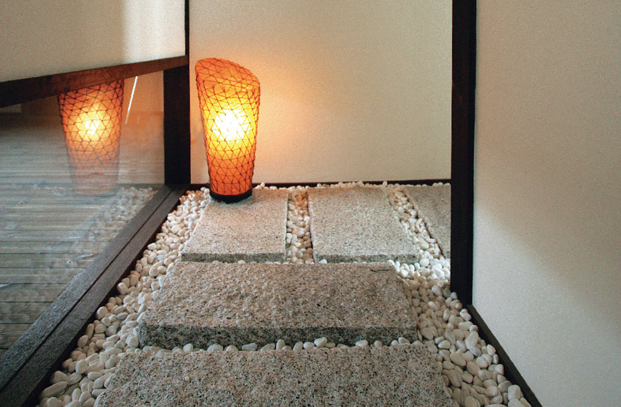 和のテイストに欠かせない玉砂利、キラキラ光りを反射する気泡ガラス。